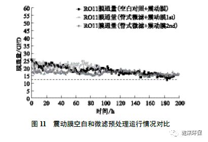 圖11 為震動膜空白和使用兩次微濾預(yù)處理的運行結(jié)果對比。