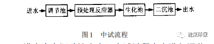 預(yù)處理后接懸浮載體生物膜法。所用懸浮填料呈球形和圓柱形,比表面積為350 m2/m3 。中試流程見圖1 。