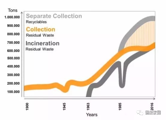 1960 年左右,二戰(zhàn)后的維也納經(jīng)濟(jì)復(fù)蘇,伴隨著人口增長,加上包裝行業(yè)新起,垃圾數(shù)量迅速增長。也是在那個時(shí)間段,維也納開始焚燒垃圾,并且在 1980 年代開始將垃圾區(qū)分為可回收和不可回收。此后垃圾數(shù)量有增無減,直到2016年才相對穩(wěn)定。