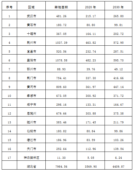 湖北省耕地草地河湖休養(yǎng)生息總體方案附表及說(shuō)明