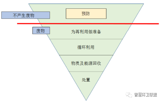 金字塔中的預(yù)防指:在設(shè)計(jì)和制造產(chǎn)品的過程中,盡量減少原料的使用量;延長產(chǎn)品的使用壽命;減少有害物質(zhì)的使用量。為再利用做準(zhǔn)備指:對產(chǎn)品的整體或部件進(jìn)行檢查、清理、修理、翻新等工作。循環(huán)利用指:使用廢物生產(chǎn)新的物質(zhì)或產(chǎn)品,包括堆肥。其他回收手段指:使用厭氧消化、焚燒發(fā)電、氣化等手段產(chǎn)生能量(包括燃料、熱、電)和一些物料(可以用作回填物)。處置指:填埋和沒有能量回收手段的焚燒。