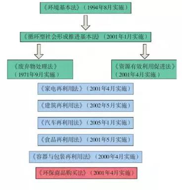 第一層次為基礎(chǔ)層次,明確建立循環(huán)社會的政策措施:減少垃圾產(chǎn)生量,以法規(guī)形式規(guī)定了垃圾產(chǎn)生者責任等;第二層次為綜合性法律;第三層次是根據(jù)產(chǎn)品的性質(zhì)具體規(guī)定的法律法規(guī),包括《家電再利用法》、《建筑再利用法》等等,由此,日本垃圾管理的法制體系趨于完善,對垃圾的生產(chǎn)、分類回收、處理及再利用的整體管理體系的建立和運行起到了制度保障。