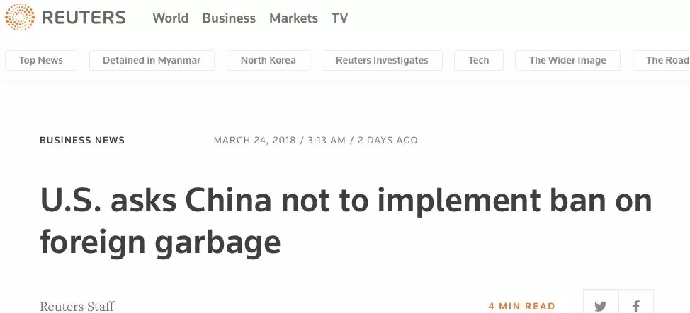 對此,中國外交部在3月26日外交部例行記者會上稱:美方對華限制高技術(shù)、高附加值產(chǎn)品的出口就是正當(dāng)?shù)?,而中國依法限制洋垃圾進(jìn)口就是違法的,這個說法很虛偽。