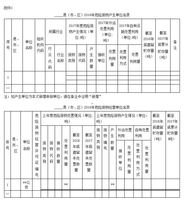 附件:1. 縣(市、區(qū))2017年度危險(xiǎn)廢物產(chǎn)生單位與經(jīng)營單位名錄