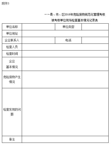 對(duì)各縣、市、區(qū)環(huán)保局危險(xiǎn)廢物規(guī)范化管理抽查考核工作,按照《危險(xiǎn)廢物規(guī)范化管理檢查考核工作評(píng)級(jí)指標(biāo)》(見附件5)執(zhí)行,考核比例不低于30%。