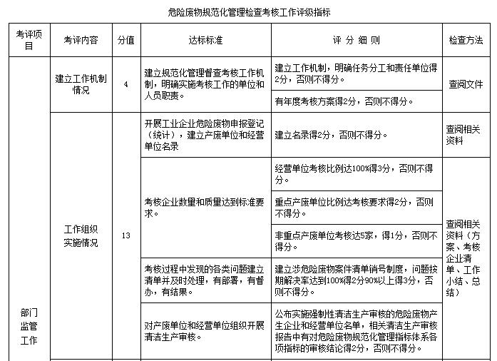 5.危險(xiǎn)廢物規(guī)范化管理檢查考核工作評(píng)級(jí)指標(biāo)