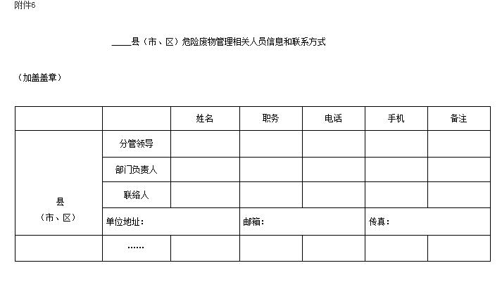 6. 縣(市、區(qū))危險(xiǎn)廢物管理相關(guān)人員信息和聯(lián)系方式