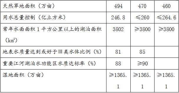 ——草地。到2020年,全省天然草地退減速度得到有效遏制,天然草地面積控制在470萬畝,天然草場(chǎng)、高山草甸、草地自然保護(hù)區(qū)等資源得到全面保護(hù),草地生態(tài)環(huán)境得到改善,草地生態(tài)系統(tǒng)自我修復(fù)能力增強(qiáng);人工種草和草地改良技術(shù)得到有效提高;初步建立以草地生態(tài)補(bǔ)助獎(jiǎng)勵(lì)機(jī)制、草地監(jiān)測(cè)評(píng)價(jià)考核等為主要內(nèi)容的草地休養(yǎng)生息保障制度。
