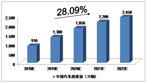 圖表中投顧問(wèn)對(duì)2018-2022年中國(guó)汽車報(bào)廢量預(yù)測(cè)