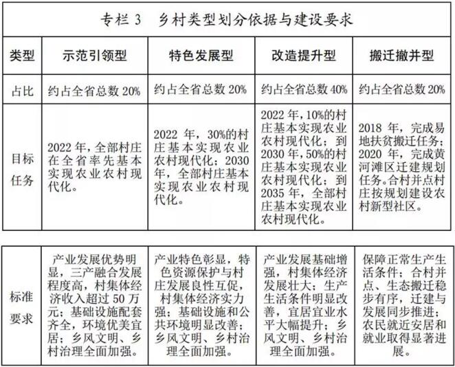 順應鄉(xiāng)村發(fā)展規(guī)律和演變趨勢,針對沿海、平原、山丘區(qū)、灘區(qū)、湖區(qū)等鄉(xiāng)村面貌,探索適宜性路徑,實施“三步走”戰(zhàn)略,每五年一個大臺階,到2022年,全省生態(tài)宜居美麗鄉(xiāng)村取得重要突破,30%的村莊基本實現(xiàn)農(nóng)業(yè)農(nóng)村現(xiàn)代化;到2030年,山東特色美麗鄉(xiāng)村整體塑形,60%的村莊基本實現(xiàn)農(nóng)業(yè)農(nóng)村現(xiàn)代化;到2035年,廣大鄉(xiāng)村“齊魯風情畫”全面展現(xiàn),全部村莊基本實現(xiàn)農(nóng)業(yè)農(nóng)村現(xiàn)代化。綜合考慮建設形態(tài)、居住規(guī)模、服務功能等因素,分類推進村莊建設。