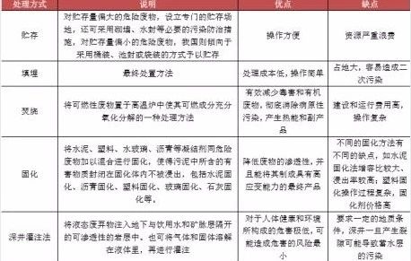 主要的危險(xiǎn)廢物最終處置方式比較