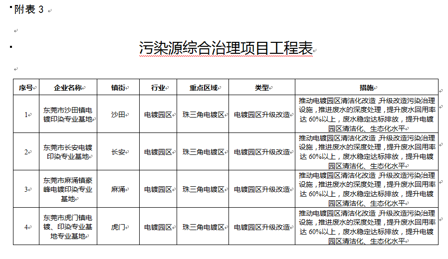 3. 污染源綜合治理項(xiàng)目工程表