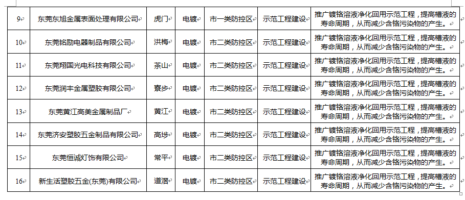 金屬表面處理及熱處理加工(電鍍)行業(yè):推廣采用三價(jià)鉻鍍鉻、鍍鋅層鈍化非六價(jià)鉻轉(zhuǎn)化膜等工藝技術(shù)。推廣采用鍍鉻溶液凈化回收技術(shù)。