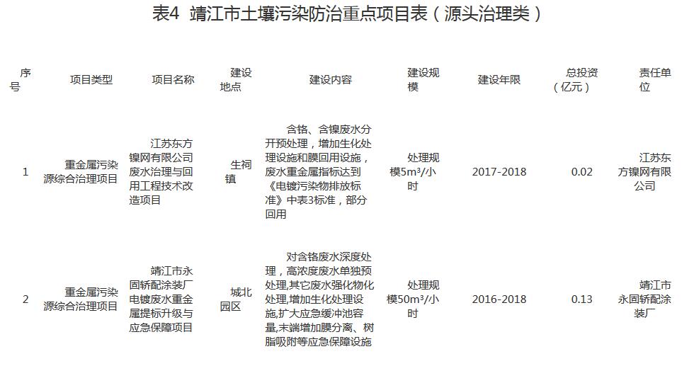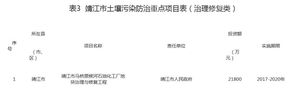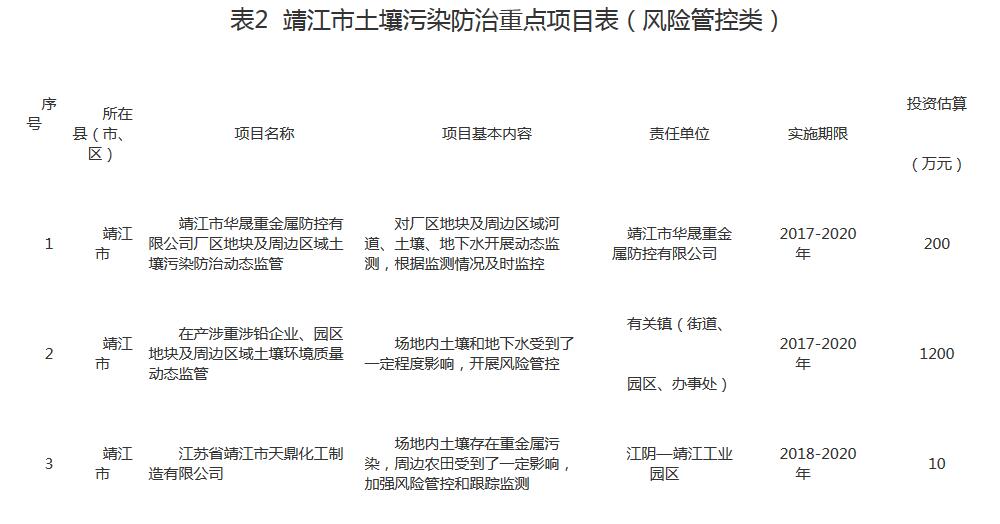 附件:靖江市土壤污染防治重點項目表