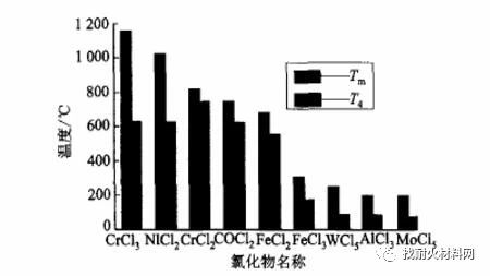 圖2部分氯化物的熔點(diǎn)Tm和蒸汽達(dá)到10.13Pa時(shí)所需溫度T4