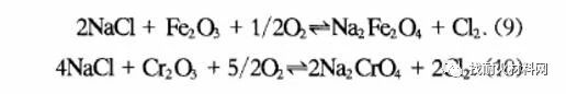 垃圾焚燒中的堿金屬氧化物,也是鍋爐高溫腐蝕的一個(gè)重要因素。這些堿金屬氧化物與HCl反應(yīng),形成堿金屬氯化物,然后冷凝沉淀在表面。沉積鹽中基于金屬氯化物硫酸鹽化作用機(jī)制,可見以下化學(xué)反應(yīng)式: