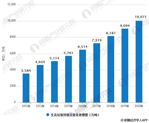 2012-2020年生活垃圾焚燒無害化處理量預(yù)測(萬噸)