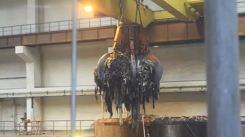 ?強(qiáng)有力的抓斗在待焚燒庫(kù)區(qū)內(nèi)靈活調(diào)度