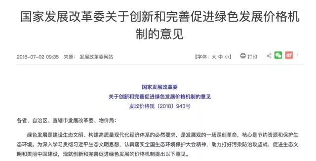 7月2日,國家發(fā)改委發(fā)布《關(guān)于創(chuàng)新和完善促進綠色發(fā)展價格機制的意見》(下稱《意見》),提出到2020年,有利于綠色發(fā)展的價格機制、價格政策體系要基本形成,促進資源節(jié)約和生態(tài)環(huán)境成本內(nèi)部化的作用明顯增強;到2025年,適應綠色發(fā)展要求的價格機制要更加完善,并落實到全社會各方面各環(huán)節(jié)。