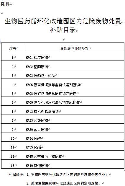 附件:生物醫(yī)藥循環(huán)化改造園區(qū)內(nèi)危險(xiǎn)廢物處置補(bǔ)貼目錄