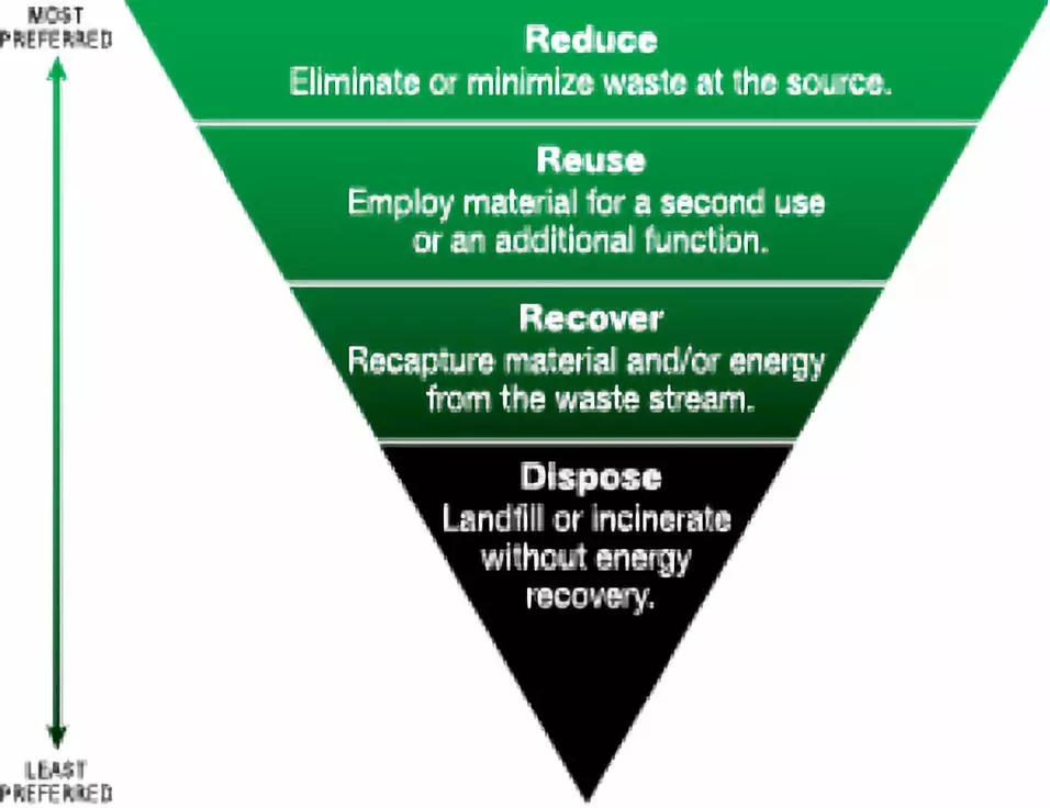 荷蘭作為一個資源匱乏的小國,在循環(huán)經(jīng)濟(jì)方面走在世界前沿。荷蘭的垃圾處理遵循一個倒金字塔原則:盡量從源頭減少廢物,作廢了就爭取循環(huán)再加工,無法再加工的用以回收能源,實在沒有價值的才填埋。