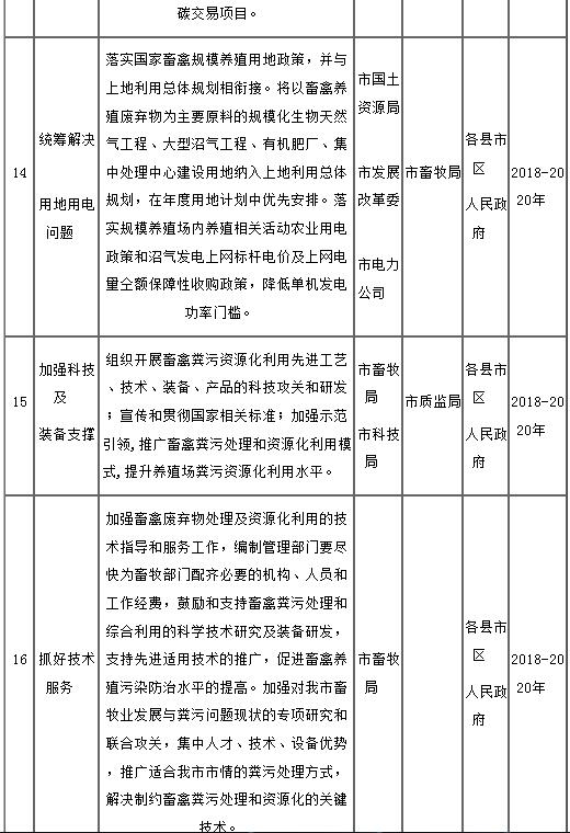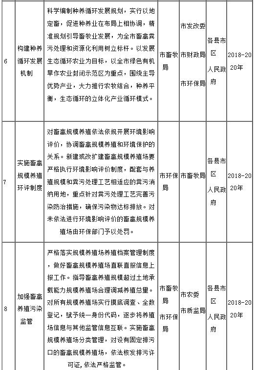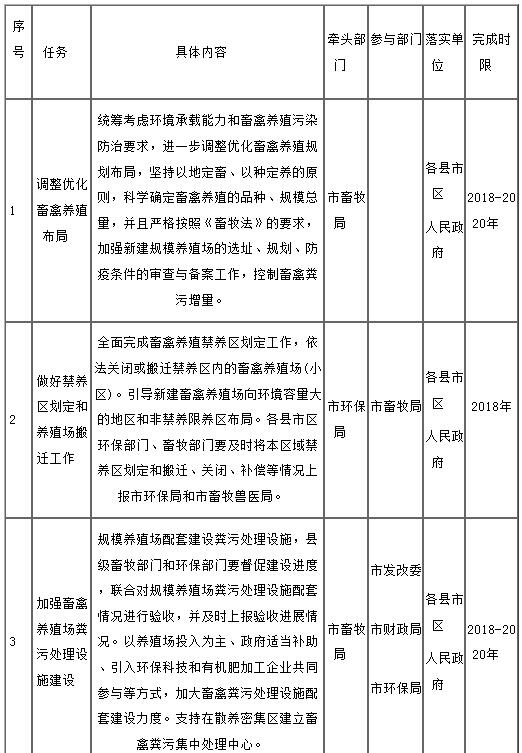 (三)落實屬地管理責(zé)任制度。各縣市區(qū)人民政府對本行政區(qū)域內(nèi)的畜禽糞污處理和資源化利用工作負(fù)總責(zé),在工作推進(jìn)中,依法明確部門職責(zé),細(xì)化任務(wù)分工,完善政策措施,加大資金投入,強化日常監(jiān)管,健全工作機制,確保各項任務(wù)落實到位。各縣市區(qū)人民政府要按照本方案的主要目標(biāo)要求,確定分年度重點任務(wù),列出工作清單,于2018年7月底前抄送市畜牧局備案。(市畜牧局牽頭,市環(huán)保局參與)