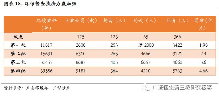 四批的中央環(huán)保督查,處理環(huán)保案件近十萬起,立案處罰2.69萬起,問責(zé)1.7萬人,罰款12.64億元,極大的增加了環(huán)境違法的成本。