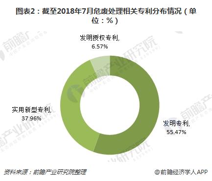 截至2018年7月2日,危廢處理技術(shù)專利申請總量只有137項。其中,發(fā)明專利數(shù)最多,達到76項,占比為55.47%;實用新型專利數(shù)其次,為52項,占比為37.96%;發(fā)明授權(quán)專利數(shù)占比為6.57%??梢?,我國危廢處理行業(yè)技術(shù)還有很大進步空間,目前處于較低水平。