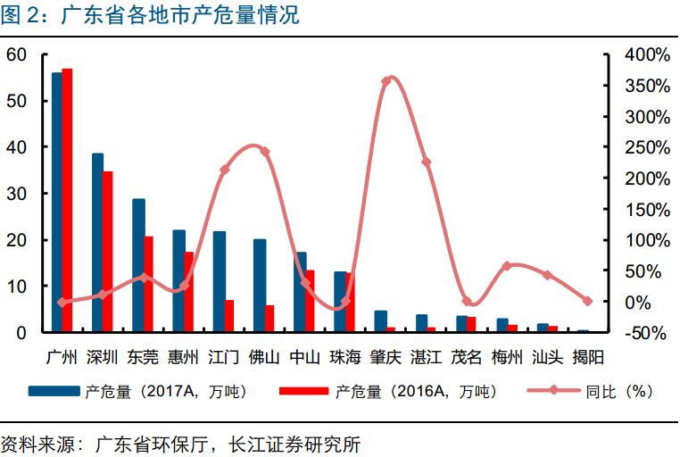 廣東省2017年危廢產(chǎn)量同比增31%至232萬噸