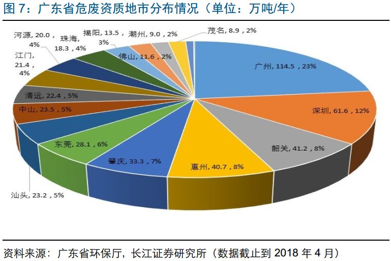 目前廣東危廢資質(zhì)達(dá)496萬噸,廣州、深圳占36%