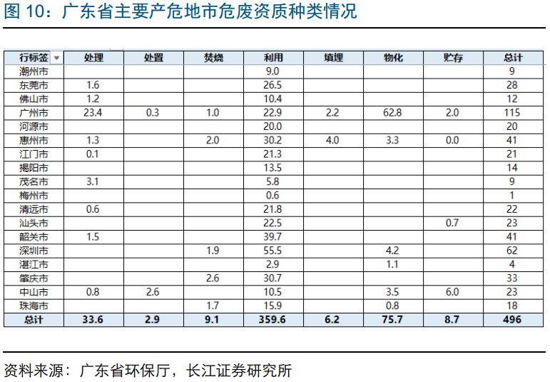 廣東省危廢資質(zhì)核發(fā)量達(dá)496萬噸,焚燒填埋能力極度稀缺。