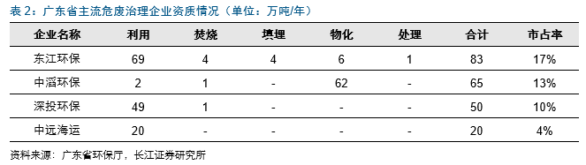 東莞市:東江環(huán)保(12.3萬噸利用,市占率44%)市占率較高;