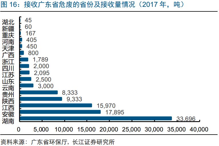 2017年跨省轉(zhuǎn)出危廢約10萬噸,集中去湖南、安徽。