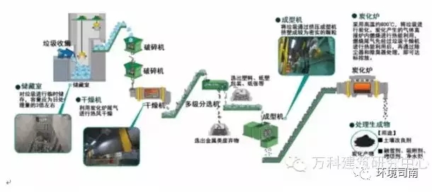 基本過程就是:有機質(zhì)——快速熱解(炭化)——炭粒+氣體。這一過程無有害氣體產(chǎn)生,什么二噁英、PM2.5都沒有。炭化適宜社區(qū)配備,垃圾減量率高達(dá)75~85%。