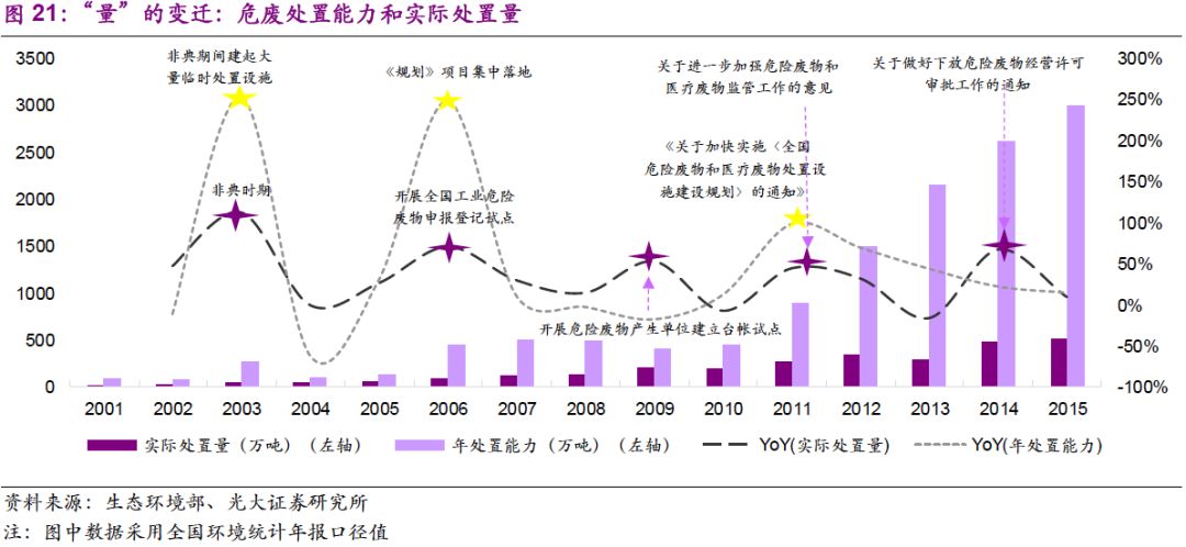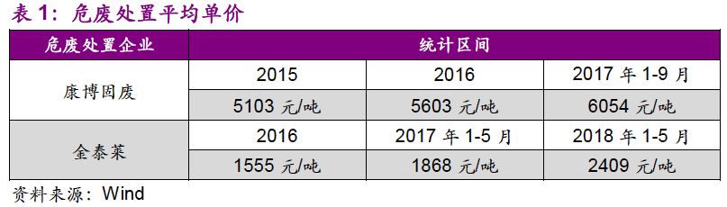 1. “量”的驅(qū)動(dòng)力已經(jīng)由工業(yè)發(fā)展轉(zhuǎn)變?yōu)榄h(huán)保執(zhí)法:環(huán)保壓力下,危廢處置需求“歷史存量+當(dāng)期增量”雙層疊加,產(chǎn)能釋放速度有望加快;“價(jià)”的波動(dòng)也在反映供需的邊際變化,短期上行、長(zhǎng)期回穩(wěn)。