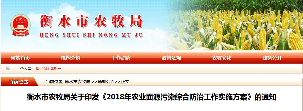 衡水市農(nóng)牧局關于印發(fā)《2018年農(nóng)業(yè)面源污染綜合防治工作實施方案》的通知