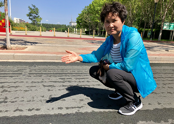 看到洗掃車經(jīng)過(guò),中衛(wèi)市城市公用事業(yè)管理所副所長(zhǎng)萬(wàn)玲隨即蹲下用手掌在道路上來(lái)回擦了擦,向記者展示機(jī)械作業(yè)效果。光明網(wǎng)王麗媛/攝
