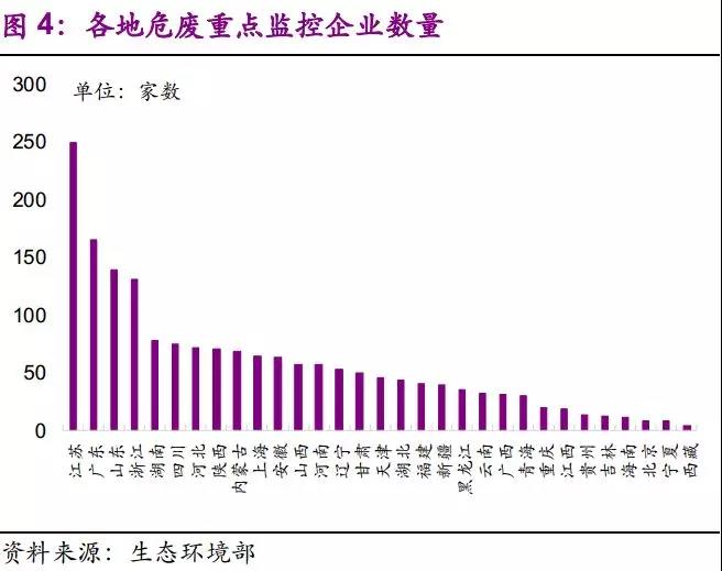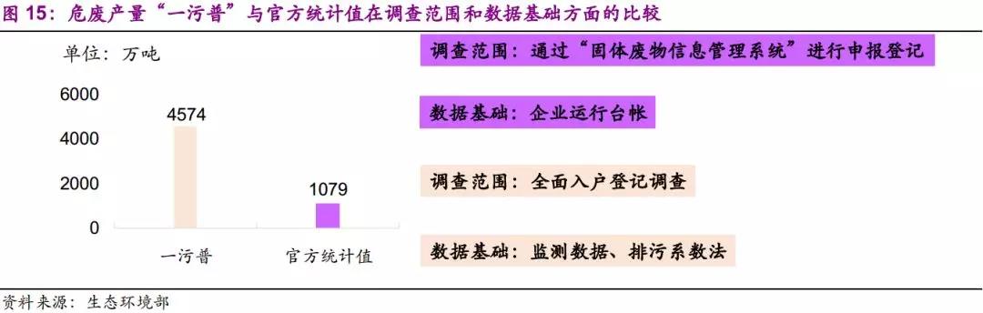 2.官方統(tǒng)計(jì)量的意義在于:反映環(huán)保力量所觸及之處的顯性需求。當(dāng)前我國危廢產(chǎn)量實(shí)行企業(yè)申報(bào)制度,隨著《“十三五”全國危險(xiǎn)廢物規(guī)范化管理督查考核工作方案》的出臺(tái),各地已建立起省、市、縣三級(jí)重點(diǎn)監(jiān)控企業(yè)名單的背景下,官方統(tǒng)計(jì)數(shù)據(jù)的意義在于反映出環(huán)保力量所觸及之處所引起的危廢治理需求,即危廢的顯性需求。