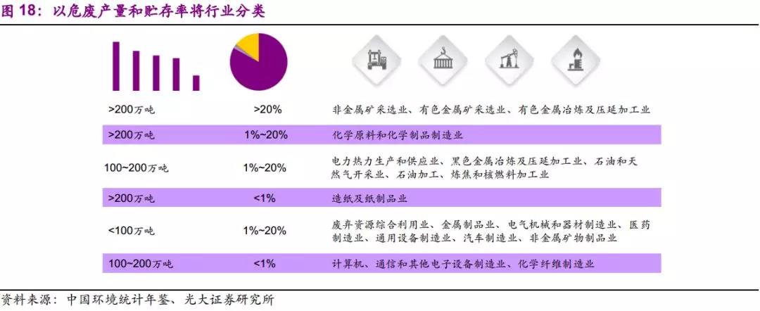 ◆危廢需求冰山浮出水面,雙層疊加帶動(dòng)量?jī)r(jià)齊升。環(huán)保執(zhí)法與制度完善是危廢處置需求釋放的關(guān)鍵推力。環(huán)保執(zhí)法(環(huán)保督察、清廢2018、二污普等)和制度完善(排污許可制度、環(huán)保稅及規(guī)范化管理考核等)將從短期和長(zhǎng)期推動(dòng)處置需求持續(xù)提升。當(dāng)前的處置需求主要來源于兩方面:1)增量部分:每年新增危廢中瞞報(bào)、漏報(bào)行為減少,非法轉(zhuǎn)移和傾倒途徑被切斷,大量危廢回歸正規(guī)化途徑;2)存量部分:大量危廢超期貯存和歷史遺留被發(fā)現(xiàn),多數(shù)已進(jìn)入當(dāng)?shù)卣畏桨福幹眯枨笫制惹小?/p>
