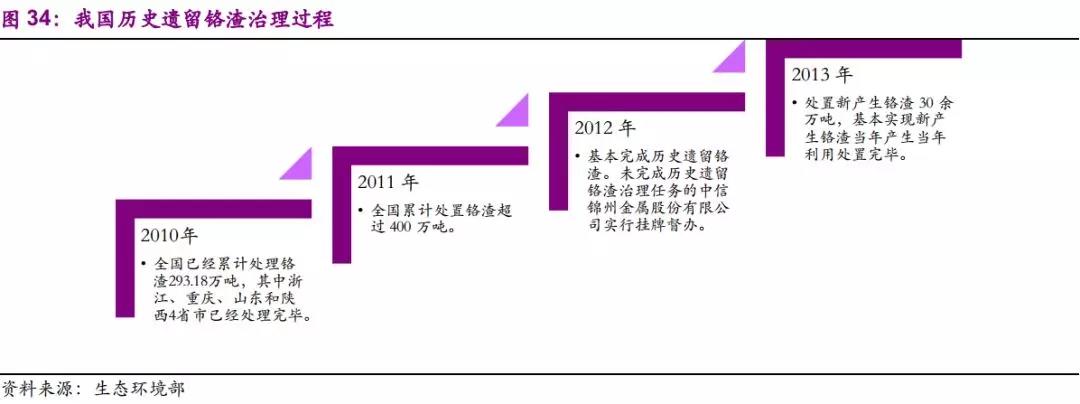 2005年,發(fā)改委發(fā)布《鉻渣污染綜合整治方案》,啟動(dòng)對(duì)全國堆存的410萬噸鉻渣進(jìn)行處置。要求2008年底前,完成環(huán)境敏感區(qū)域堆存鉻渣無害化處置,2010年底前,所有歷史堆存鉻渣實(shí)現(xiàn)無害化處置。根據(jù)《“十三五”生態(tài)環(huán)境保護(hù)規(guī)劃的通知》,截至2015年,歷史遺留的670萬噸鉻渣全部處置完畢。