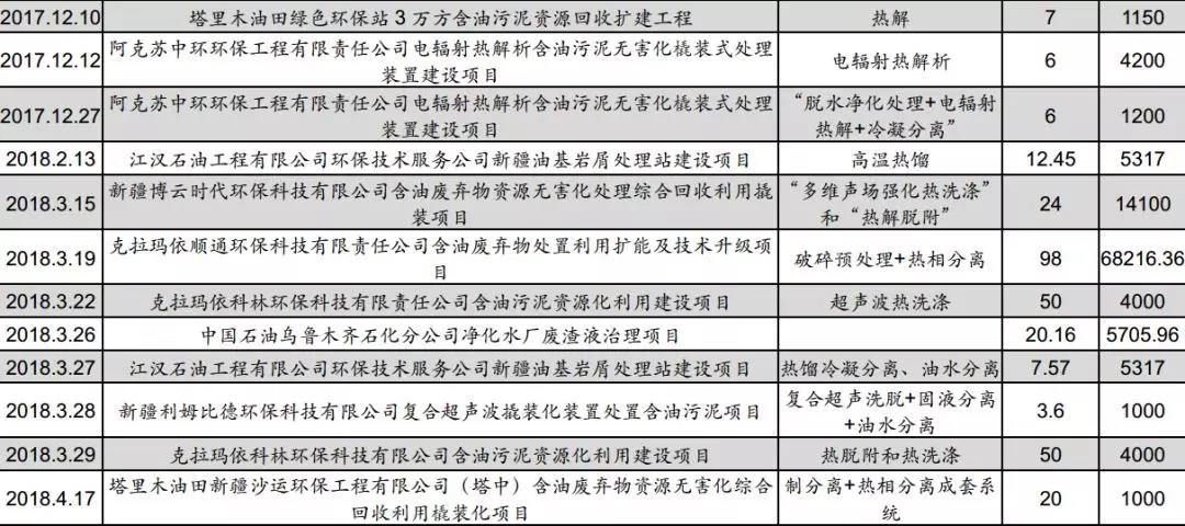 存量油泥的的治理蘊(yùn)藏巨大機(jī)會(huì)。相比其他危險(xiǎn)廢物,油泥的利用價(jià)值相對(duì)較高。從新疆環(huán)保廳環(huán)評(píng)批復(fù)情況來看,新疆油泥處理正迎來一波投資熱潮。僅對(duì)2016年至今環(huán)評(píng)批復(fù)項(xiàng)目進(jìn)行統(tǒng)計(jì),共有31個(gè)第三方油泥治理項(xiàng)目,總投資超過19億元,全部建成后將形成621萬噸/年的油泥處理能力。
