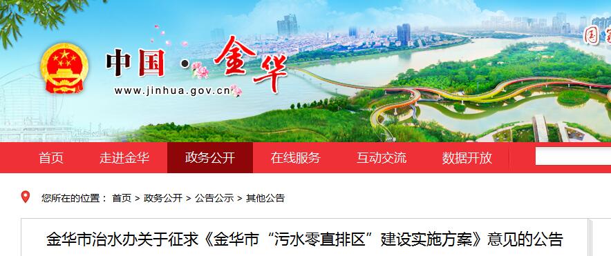 近日,浙江金華市治水辦《金華市“污水零直排區(qū)”建設(shè)實(shí)施方案》(征求意見稿)發(fā)布,詳情如下: