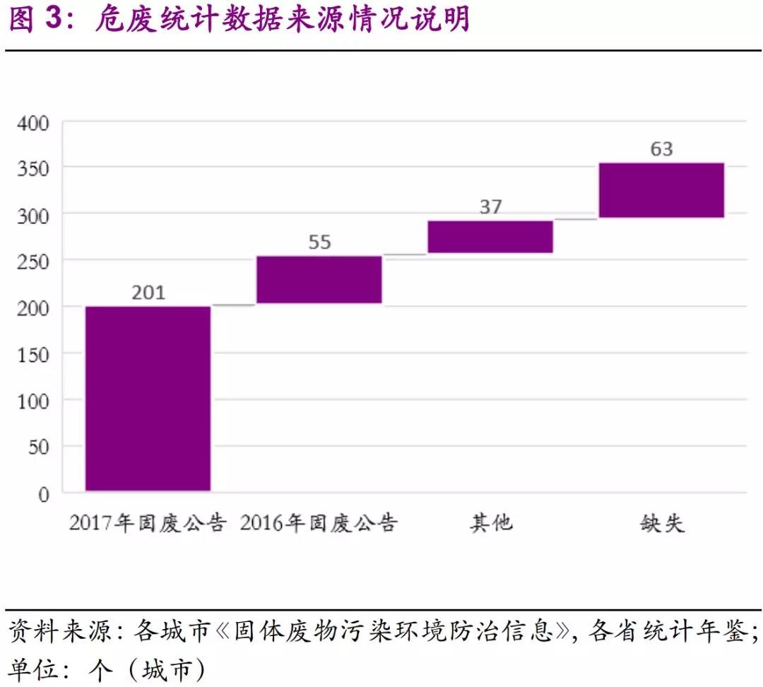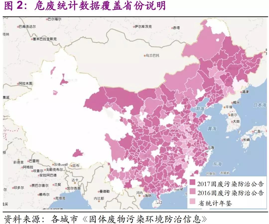 1)現(xiàn)有的市場(chǎng)研究中,對(duì)行業(yè)部分的理解仍停留在模糊層面。我們首次歸結(jié)全國(guó)300余個(gè)城市《固體廢物污染環(huán)境防治公告》,對(duì)數(shù)據(jù)進(jìn)行綜合分析,并結(jié)合各地各行業(yè)工業(yè)總產(chǎn)值,在危廢產(chǎn)量-種類(lèi)-工業(yè)結(jié)構(gòu)之間建立起分析框架。