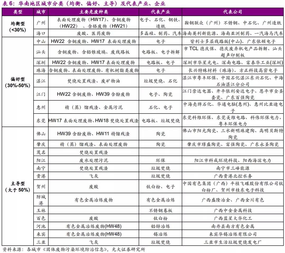 因此,我們認(rèn)為華中地區(qū)危廢種類(lèi)較為復(fù)雜,建議關(guān)注有色金屬冶煉和壓延加工業(yè)及化學(xué)原料和化學(xué)制品制造業(yè)所產(chǎn)生的危廢,如有色金屬冶煉廢物、廢堿等。