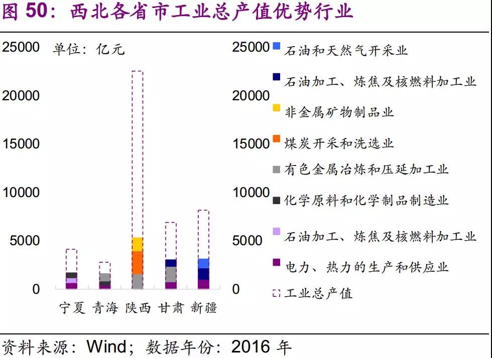 從全行業(yè)來(lái)看,寧夏、青海、陜西、甘肅、新疆的優(yōu)勢(shì)產(chǎn)業(yè)分別為電力、熱力的生產(chǎn)和供應(yīng)業(yè)、有色金屬冶煉和壓延加工業(yè)、煤炭開(kāi)采和洗選業(yè)、有色金屬冶煉和壓延加工業(yè)和石油加工、煉焦及核燃料加工業(yè)。