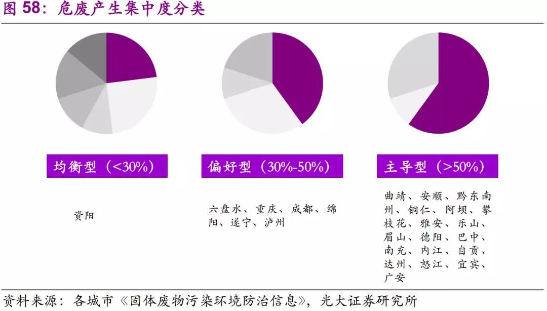 資源支撐型:產(chǎn)業(yè)結(jié)構(gòu)單一,主要依靠先天自然資源發(fā)展,因此危廢種類(lèi)單一,集中度較高,同時(shí)產(chǎn)業(yè)規(guī)模較大,產(chǎn)廢量較高,以攀枝花、克拉瑪依等城市為代表。
