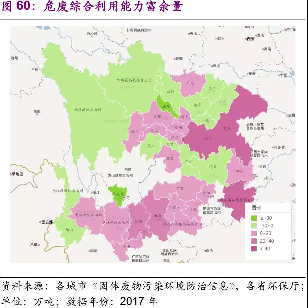 從相關(guān)資質(zhì)許可來(lái)看,西南地區(qū)處置產(chǎn)能較為缺乏,利用產(chǎn)能則具有東南多、西北少的特點(diǎn)。這與西北地區(qū)為少數(shù)民族自治區(qū),同時(shí)較為偏遠(yuǎn)有關(guān)。據(jù)我們了解,四川、云南等地企業(yè)自行處理較為普遍。根據(jù)《云南省危險(xiǎn)廢物利用處置規(guī)劃(2016年-2020年)》,2014年云南省自行利用處置有色金屬冶煉廢物156萬(wàn)噸,委托利用處置29噸。2017年,怒江州自行利用處置和委托利用處置量分別為84和4.6萬(wàn)噸。而《四川省危險(xiǎn)廢物集中處置設(shè)施建設(shè)規(guī)劃(2017-2022)》顯示,全省工業(yè)危險(xiǎn)廢物企業(yè)自行處置利用率約 85%,委托集中處置利用率約12%。因此,核準(zhǔn)產(chǎn)能的缺乏并不代表處理產(chǎn)能的缺乏。