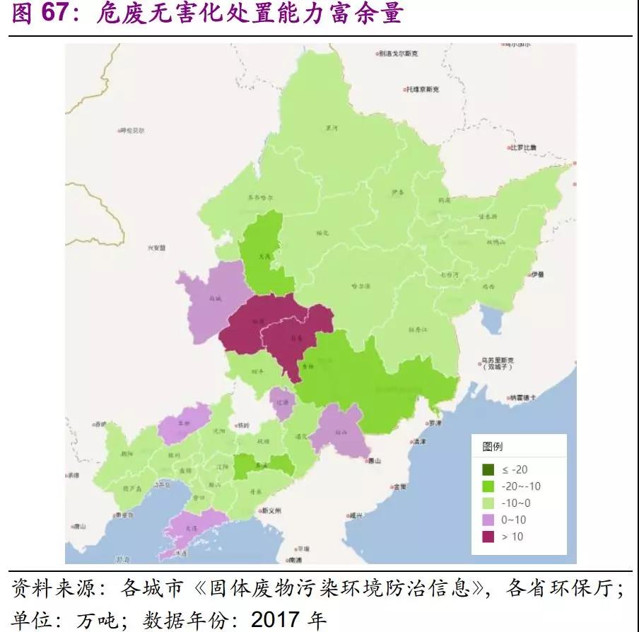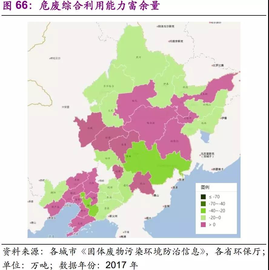 整體來(lái)看,東北地區(qū)利用能力富余,處置能力普遍不足。遼寧地區(qū)利用產(chǎn)能最為豐富,基本實(shí)現(xiàn)每個(gè)市都有富余,吉林省其次,黑龍江則利用和處置能力雙不足。其中吉林、鞍山利用能力缺口在20-40萬(wàn)噸級(jí)別,吉林、大慶、本溪處置能力缺口在10-20萬(wàn)噸級(jí)別。
