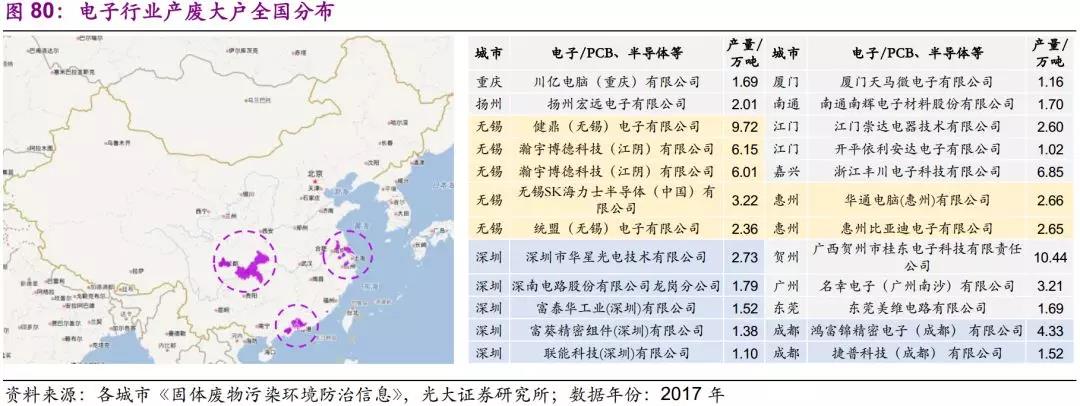 因此,我們建議關(guān)注華南地區(qū)通信設(shè)備、計(jì)算機(jī)及其他電子設(shè)備制造業(yè)所產(chǎn)生的危廢,如含銅廢液等。