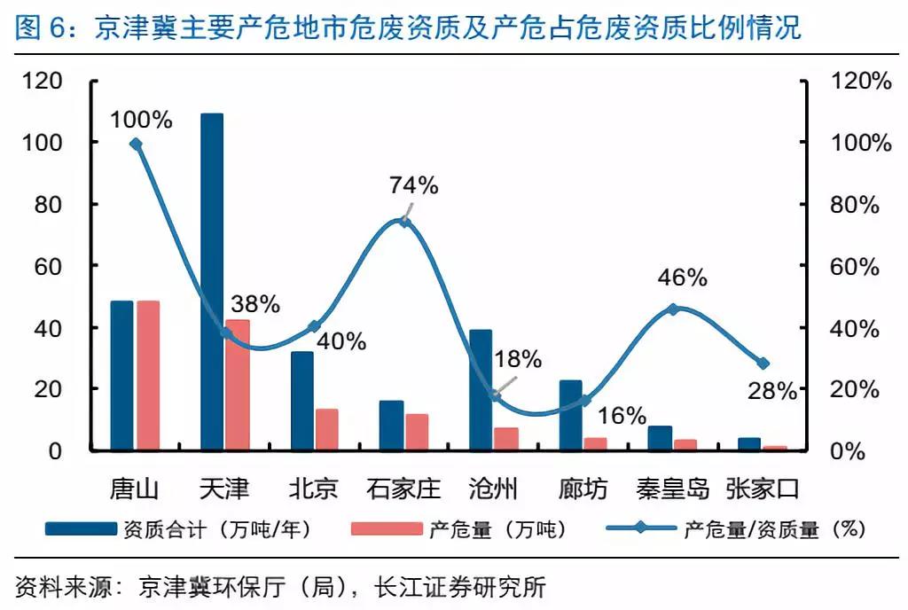 唐山(100%)占比較高,危廢處理產(chǎn)能供給相對緊張;